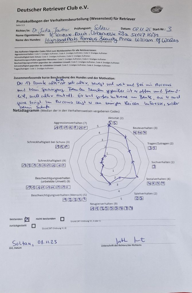 MULTI CH Highlandflats Alice Merton) besteht in Soltau den Wesenstest mit 17 Monaten.