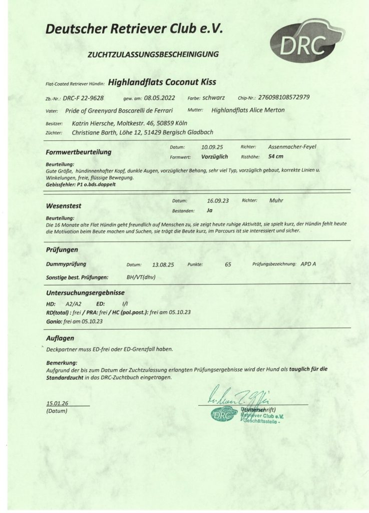 🐾🍾 Chianti – Highlandflats Coconut Kiss (08.05.2022) hat die Zuchtzulassung im DRC erreicht 🎉