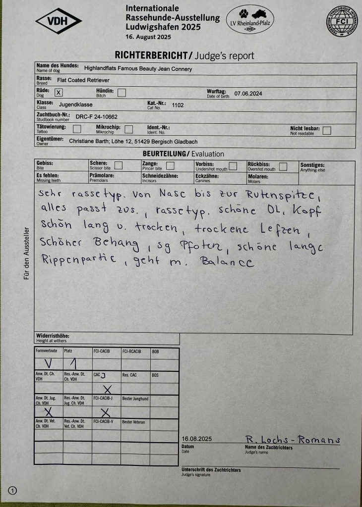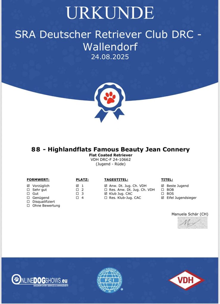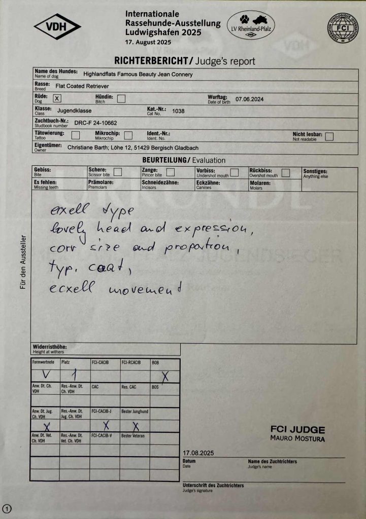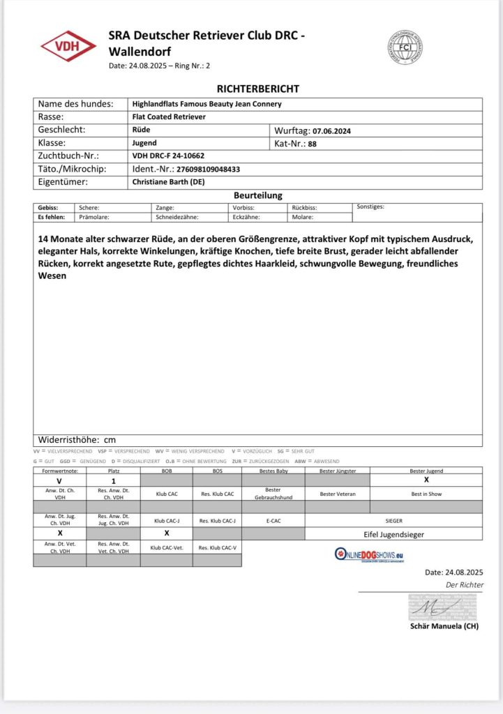JAS (Jagdliche Anlagensichtung) für CONALL – Highlandflats Famous Beauty Jean Connery